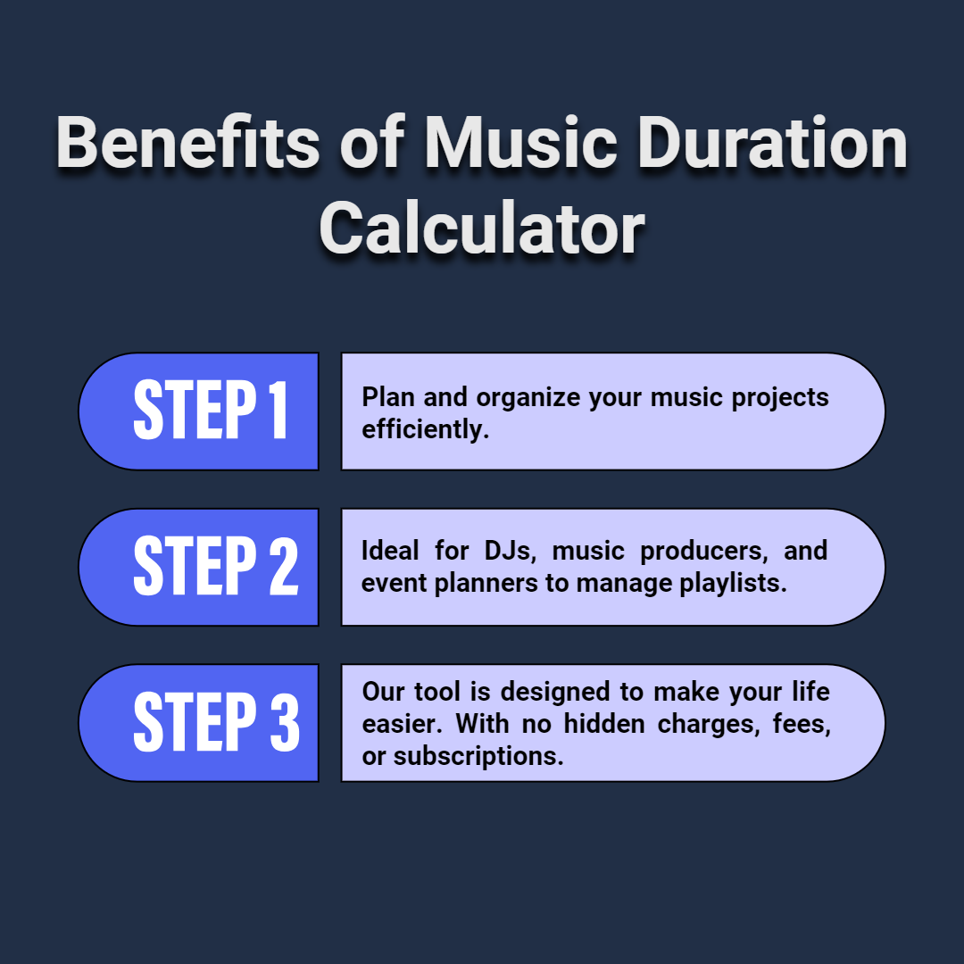 A Music Duration Calculator is a tool that helps you determine the total length of multiple audio tracks combined. It's useful for creating playlists, albums, or ensuring that you stay within time constraints for events.